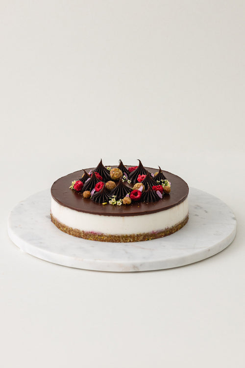 Datolya, pisztácia, málna, kókusz, étcsokoládé torta